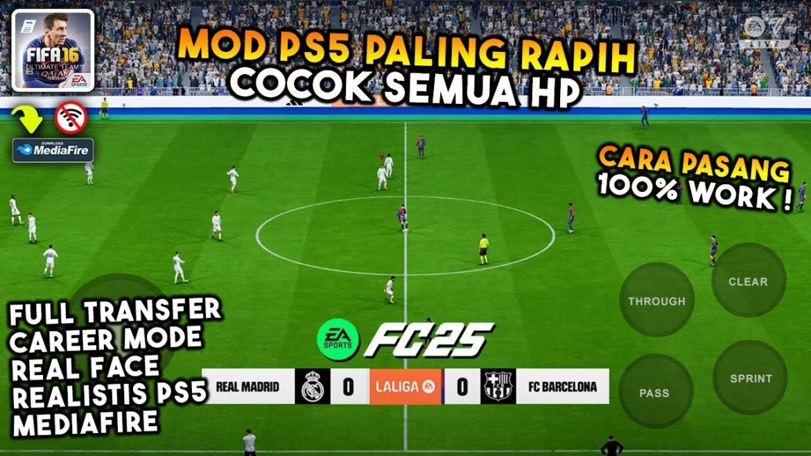 Experience the latest FIFA 16 mod FC25 with updated tournaments, career mode, and transfers. Play offline on Android or PC now!