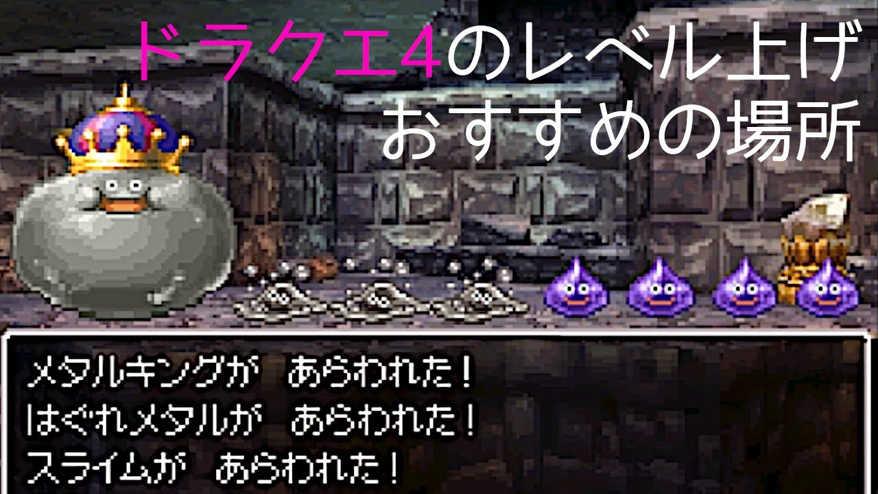 ドラゴンクエスト4でも、メタル系のスライムを倒す「メタル狩り」によるレベル上げが可能です。