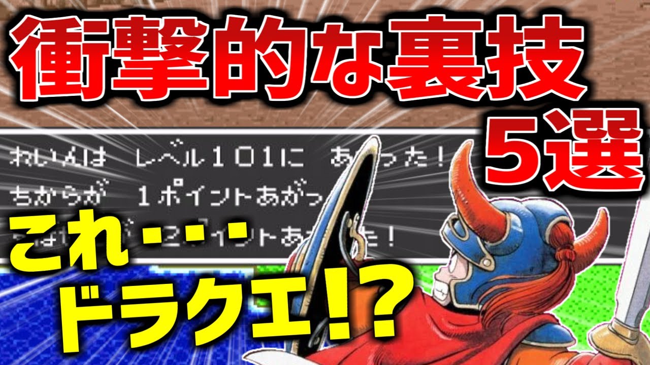 昔のドラクエ1と2の裏技を振り返る動画です。有名なものからマイナーなものまで個人的に衝撃的だったものをまとめています。派生の裏技を含めて大枠で5選としています。知っている方も知らない方も楽しんで頂けると幸いです!