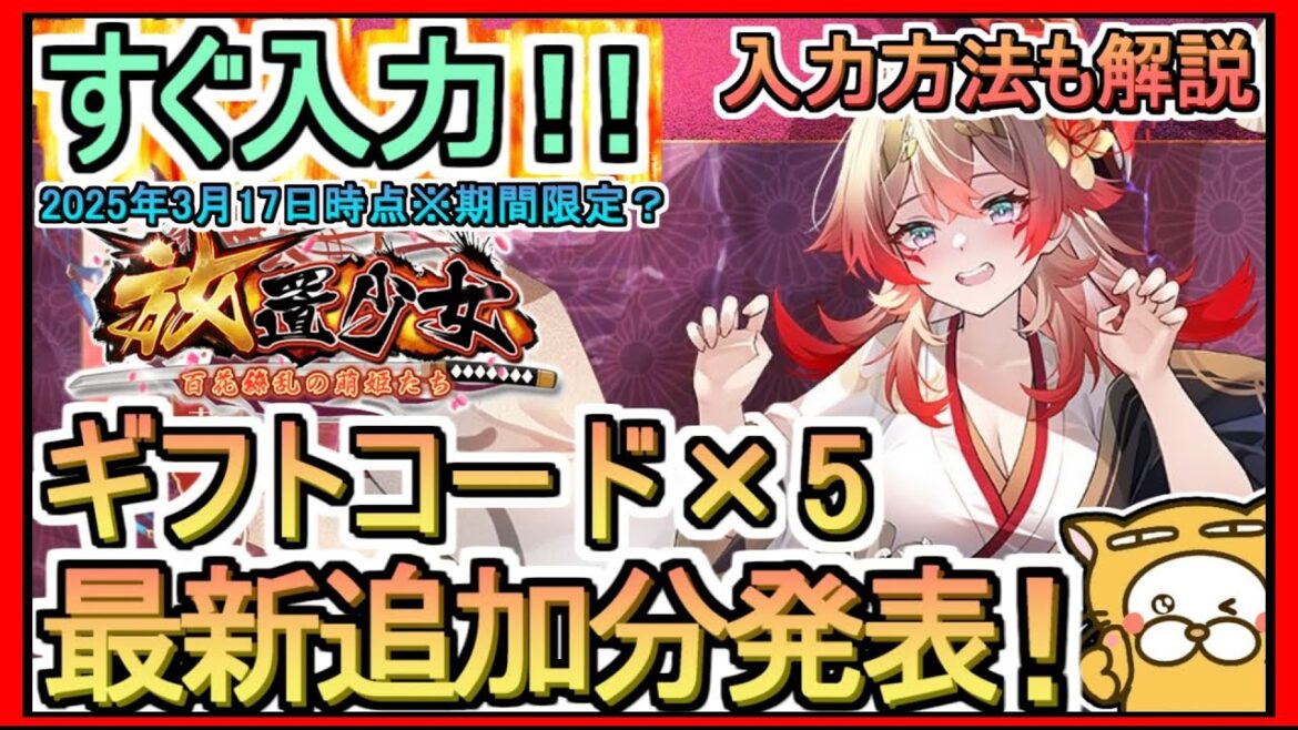 【放置少女】ギフトコード 最新追加分発表 入力方法解説※期間限定【放置少女~百花繚乱の萌姫たち~】コード