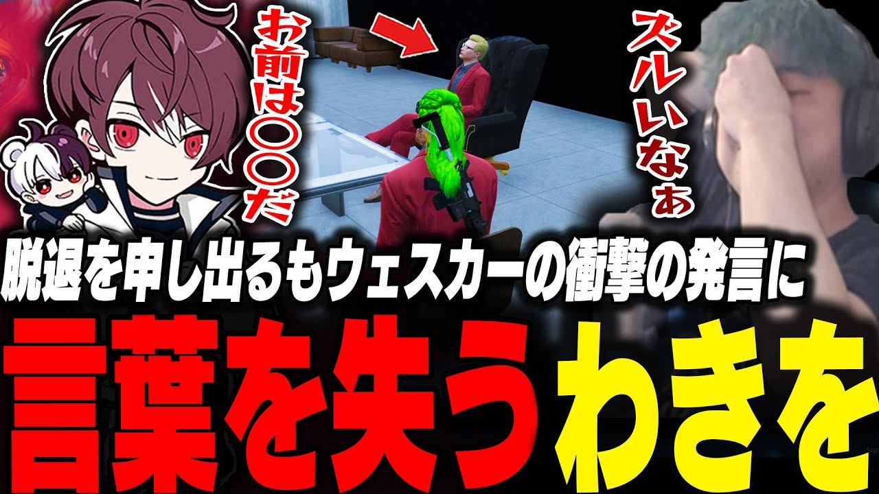 ウェスカーに脱退を申し出てとうかの責任を背負うも衝撃の発言に言葉を失うわきを【ストグラ/わきを/餡ブレラ/つよがりとうか/ウェスカー/ごっちゃんマイキー/こうまい/華月/MOZU】