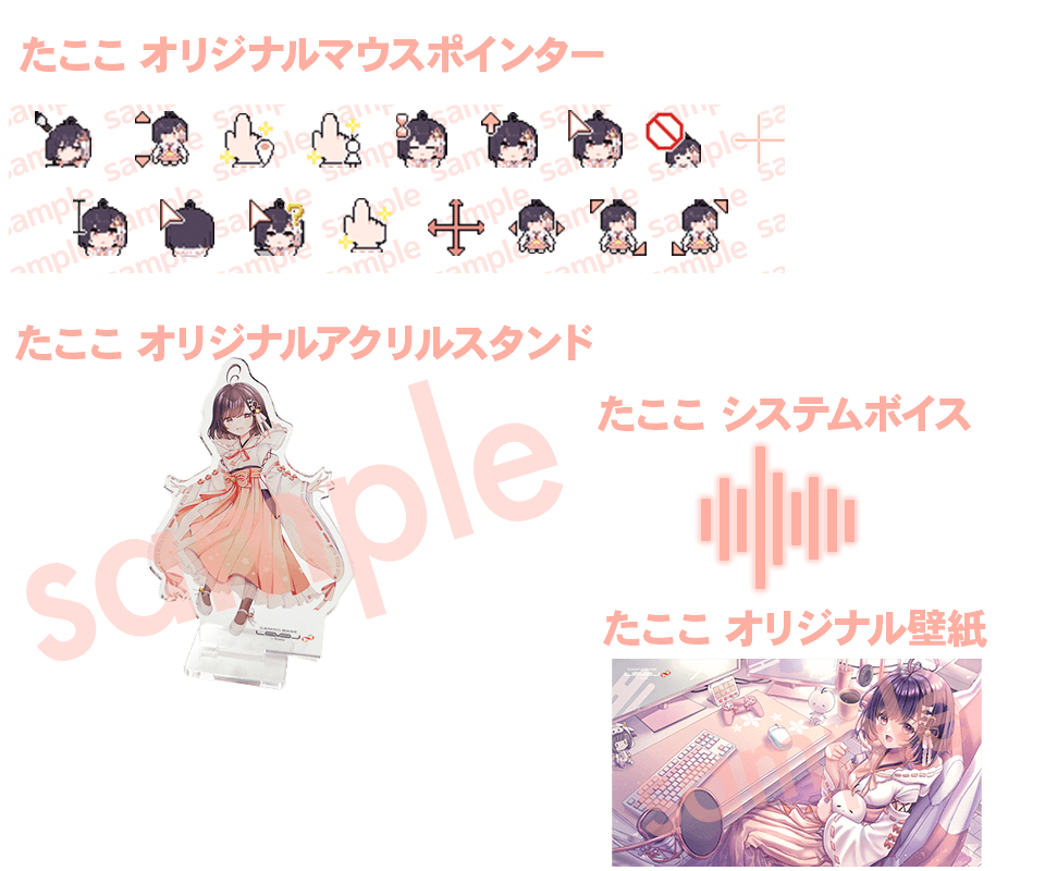 ◇ たここオリジナルアクリルスタンド、マウスカーソル、壁紙、システムボイスをプレゼント