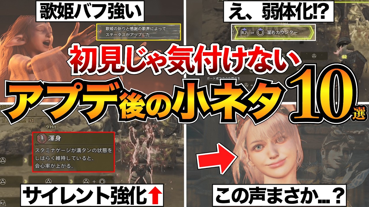 【モンハンワイルズ】サイレント修正も!?アプデ後の隠された小ネタ10個を紹介!/歌姫バフ/渾身/ランス/タルコロチケットなど
