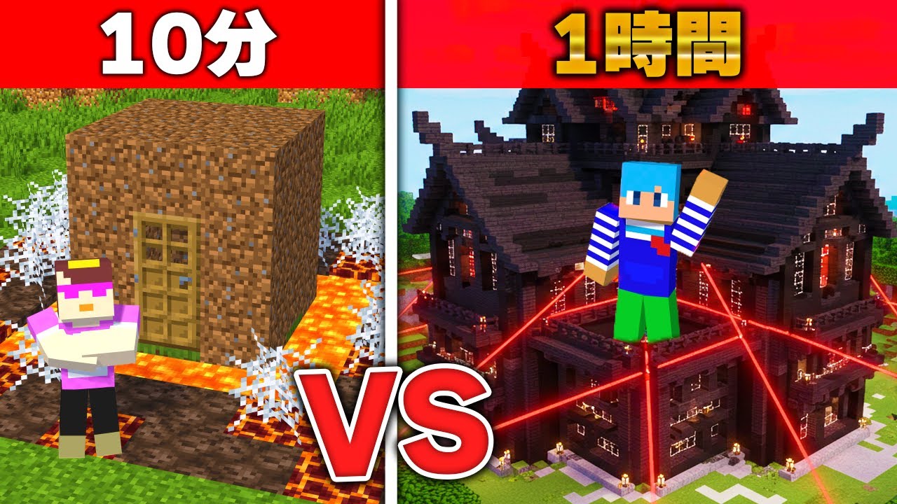 10分 vs 1時間で作ったセキュリティハウス対決!【まいくら / マインクラフト】