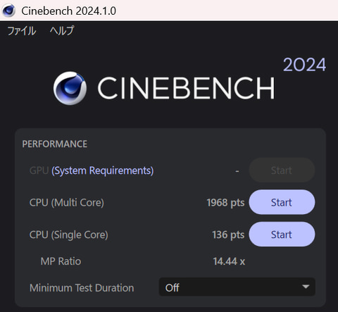 Cinebench 2024の結果3DMark