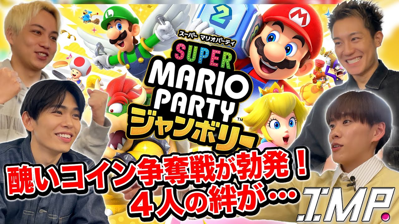 どうもIです。 さあ、というわけで、はい、今日は4 人ですね。はい、4人。この4 人と言ったらもう、もうあれでしょ。 あれしかないです。大食い企画でしょ? 違うだ。 絶対体はる系でしょ。これ体るよ。 違ました。違う違う違う違う。 されるじゃん、俺。 いやいや晴れる4人ではあるけども。 はい。今日はシンプルにみんなが楽しめる。 ちゃんとあの楽しめるゲームを。 何ですか?お、ごめ言っちゃった。 ゲームって言ったな、今な。ゲーム でもさ、この4人でさ、ここの場所で4 人でやったことあるよね。はい。 あ、ゲームやったわ。 あれじゃない?ワリオ、ワリオか。動いたわ。 あ、じゃ、動く系だ。動く系だ。 いや、皆さんんすか?なんすか? そう言うと思ってはい。 そう言うと思ってたんだ。今回はちゃんと 用意してきました。ちゃんと 前回もちゃんとしてたけどはい。 あれもちゃんと楽しかったよ。 ちゃんと楽しかったね。あの、今回は はい。 あの、体をはるようなゲームでございません。 あ、そうな。大丈夫ですか?はい。 今回みんなで遊ぶゲームは はい。マリオパーティーチャンバリ 来ました。 やりたかった。これ。うん。 あの、去年はですね、7人であの前作の マリオパーティスーパースターズっていうものを遊んだんですがね。 はい。今回あの最新作をおマジで はい。この4人で ガチプレイしていこうと思います。ありが はい。え、す6モードで プレイしていきます。はい。はい。 はい。はい。はい。知ってるね人も多いと思うん。すモードね。というわけで早速プレイしていきましょう。お願いします。 やった。 [音楽] 早速ちょっとキャラクターをね。これ大事ですから。 大事だねえ。 これってさ、このキャラクターであるの?そのゲーム能力とかってこと? なかった。今回はない。 マリカーはあるよ。うん。うん。 マリカーはあるんだけど これはもうシンプルにもう見た目だけ。 ええ。はい。テレサです。 どうしよっかな。 いや、ちょっとクッパジュニアもいいんだけど。 ガボン可愛くね。 ガボンにするわ、俺。 ガボンも可愛いんだよな。 俺は美貌のキャサリにしよう。 バリオだろ。 確かに 分かったよ。いいね。 いいね。 いや、でも今でこそガボンじゃない。 ガボン?ガボンどれだ?今でこそガボン。 いや、つくボンいいよ。ずっとあげる。 確かに髪型ガボンだわ。 髪型ガボン。ちょっとマリオにするわ。 シンプルマ。公、シンプルマリオ。 え、これさ、前回やった時ってさ、なんかここの 22の協力みたいなあったじゃん、 ミニゲーム。今回勝負じゃん。 いや、そういう時もあるよ。 あ、じゃあ足引っ張んなよみたいなこともあると思。 ある、ある。うわ、マジかよ。普通にか。 いやあ、これなんかな、横っぽくて好きなんだよな。チョロップ。 チョロップ。お前可いい。 お前だよ。電気のこないだのさ、ツア中さ、朝めっちゃ早かっただけど 朝の横 機能してない時。 うわあ。でもま、ちょっとクッパジュニアで行くわ。俺は。 あ、お、いいね。行こうぜ。 行かさせていただきます。お、マップ決めよう。だった。選べます。これ いいっすよ。ここが一番多分簡単な 簡単。へえ。まあでもつき君いるし最初は簡単な方からいいんじゃない?いや、舐めすぎだべ。な めすぎだ。 これちっちゃい子とかも遊べるやつでしょ? そんなもう行けます。はい。いいね。 278 の成星人がさ、簡単はやばい。うん。 でも1難しさ。1 うん。3なのよ。うん。あ、じゃ4か。3 じゃない。3か。どうぞ。 サイコロスピードウェイ行こうぜ。 じゃ、ここにしようか。はいはいはいはい。行きます。 うわ、10ターンか。短けえぞ。 どういう、どう、あ、星だっけ?星が紹介。 星、星、星、星。最後のスピードウェイおもろそう ね。楽しそう。 [音楽] あ、本当にこれサーキットになってんだ。 すご。マリ。ええ、マリカーみたい。 すご。色々仕掛けがあるんだよね。 うわ。あ、すげえ。 なんかそこ行くと何か起きるみたいな。 うん。うん。うん。うん。 ました。 ここが今回のスーパーソ決める場所ですと。 はい。この場所は初めて。初めてです。 です。コースを走ってきます。 お、結構広いね。 スターがゲットできるのは2 箇所だけ。マジで? え?あ、移動しない系。 うん。移動しない系ってことかな? 星のマークが目印と。はいはいはいはい。 最初は奥のコースにスターがあります。誰かがスターをゲットするた。あ、交互にそこに移動する。あ、なるほどね。はいはいはいはいはい。 ここはサイコロスタンド。10 コイン払うと移動系アイテムを持てる数だけもらえます。コインも大事なんだ。コイン。 あ、持てる数だけもらえんだ。今回 ね。ちょっと目立つ模様のマス。ジャンプスイッチです。 お、 止まるとスイッチが作動して反対側に飛ばされちゃう。 あ、マジでやだ。ここは ま、利用できるかもしんないし ね。うん。はい。はい。 こちらは入れ替えマシン。 正面のマスに止まると起動します。こ