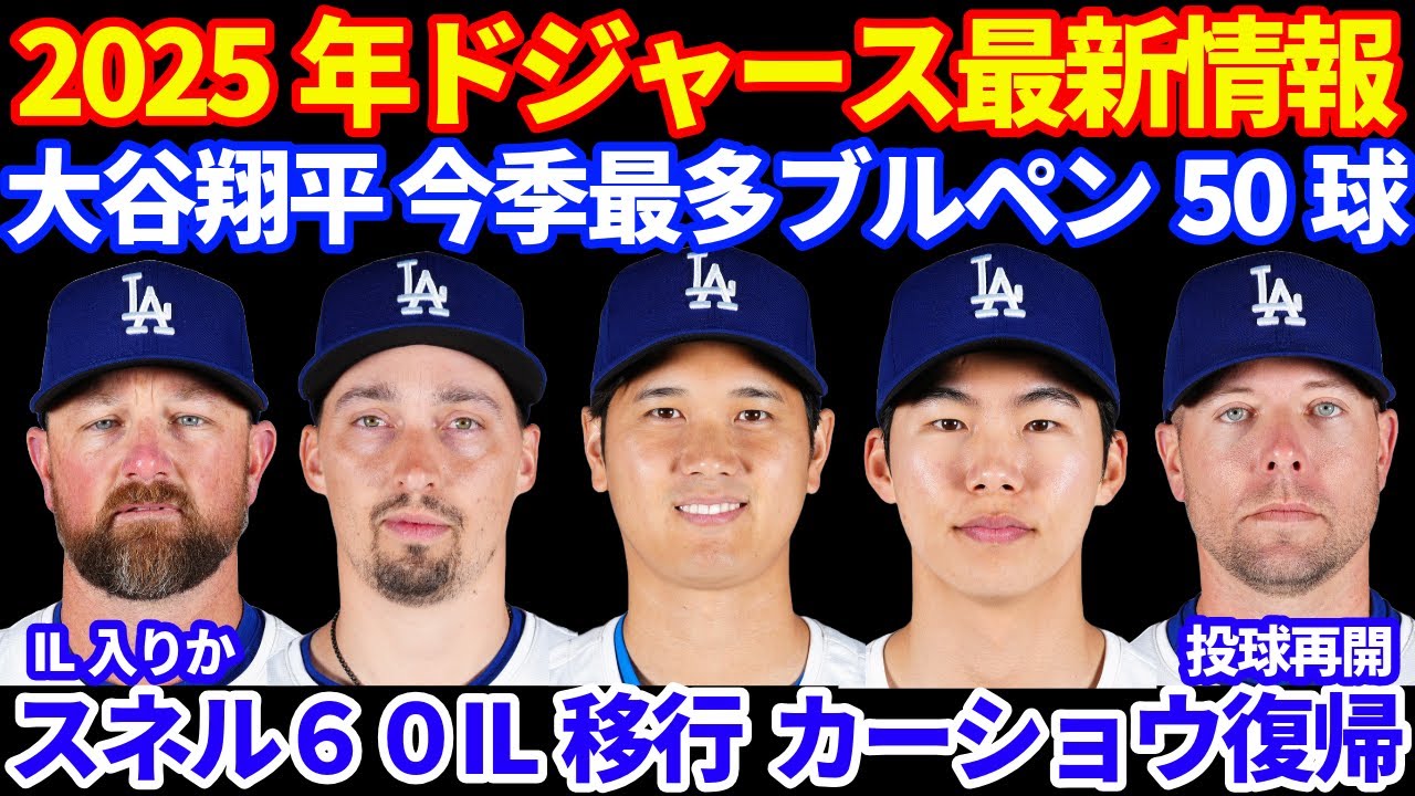 2025年 ドジャース最新情報‼️ 大谷翔平 投手復帰に向けブルペンで今季最多50球⚾️ ドジャース連敗💦 スネルが60IL移行でカーショウ復帰 トライネン投球再開 イエーツIL入りか?💦