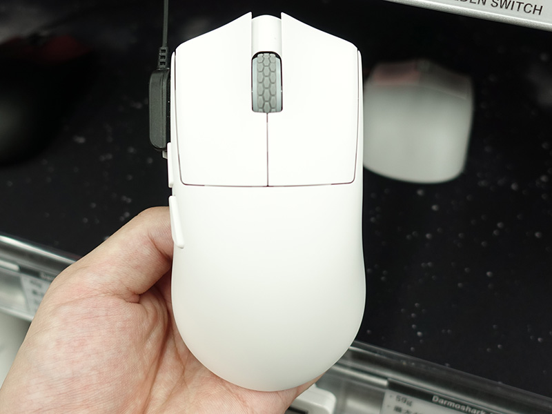 同社のマグネシウム合金製マウス「M2 Daero」の形状をそのままに、プラスチック筐体化したモデルとなっている。