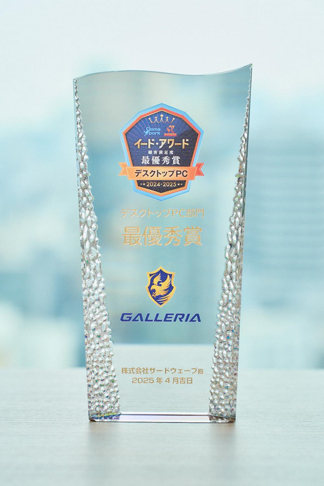イードがゲーミングPCのユーザー満足度を調査した「ゲーミングPCアワード 2024-2025」において、「デスクトップPC部門」総合満足度の最優秀賞に「GALLERIA(ガレリア)」が選ばれました。