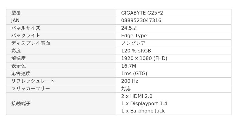 『GIGABYTE G25F2』は、FHD解像度(1920×1080)の24.5インチゲーミングモニターです。