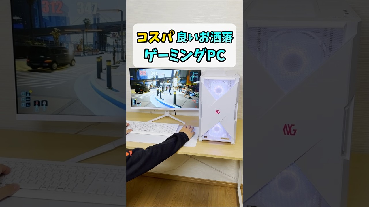 コスパが良くておしゃれなゲーミングPC 。初めてのパソコン購入にもおすすめの ネクストギア。安い、強い、かっこいいの 3拍紙。中でもおすすめの機種がこちら。 ガラスサイドパネルで中が見えておしゃれ です。グラボはRTX5070ででかい サポートステイでしっかり支えられてい ます。CPUも7800X3Dと高性能で バランスの取れたスペック。当然ゲーム 性能は高く、Apexでは上限の300 FPSに貼り付いて遊べました。5000 番台なのでマルチフレーム生成も使用でき オンにすると再パンレイトレウルトラ設定 でも300FPS超えと異次元の数値。 電源をけると光るぜ。やったね。好きな色 にも変更できてオフにもできるので安心。 個人的には白く光らせるのがおすめ。 デスク周りもホワイトデバイスで揃えると 統一感が出ますね。ゲーム以外でもAI 生成や動画編集、配信などでもおすすめの PC。詳しいレビューは本編でやっている ので下の方のリンクからチェックしてみて ね。