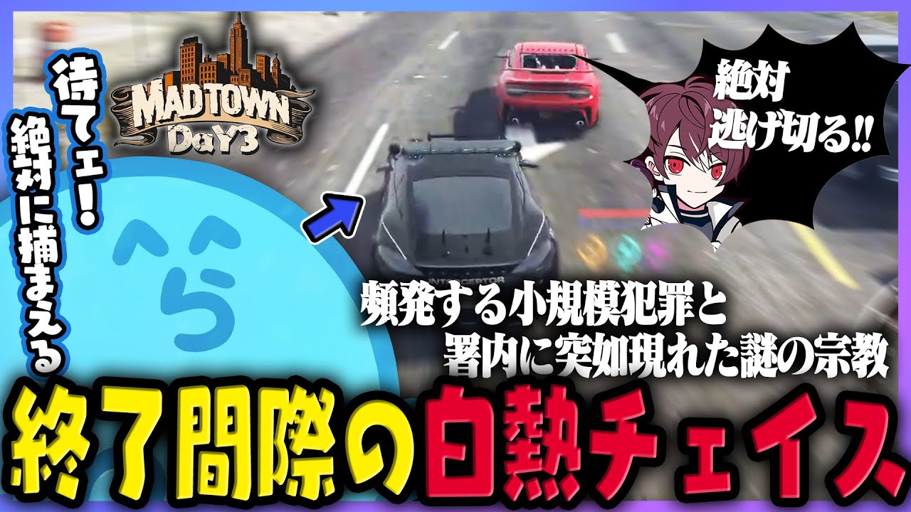 【MADTOWN(β)】ついにギャングが結成され小規模犯罪も頻発してきた中でサーバー終了間際にごっちゃんVS警察でカーチェイス勃発!!その行方は… DAY3まとめ- GTA5【#らっだぁ切り抜き】