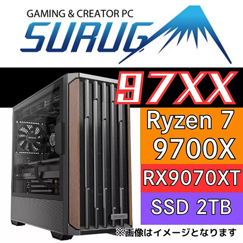 Radeon RX 9070 XT搭載のゲーミングPC「SURUGA 97XX」が駿河屋から発売。受注生産品で、価格は280,800円。