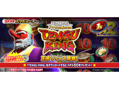 株式会社コナミアミューズメントは、『コナステ メダルコーナー』アプリ内のダウンロードコンテンツとして「フィーチャープレミアム TENGU KING(テングキング)」を追加したことをお知らせします。