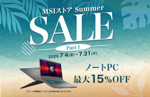 エムエスアイコンピュータージャパンは、オンラインストア「MSIストア」にて「MSIストア Summer Sale」を7月4日より開催している。開催期間は7月31日。
