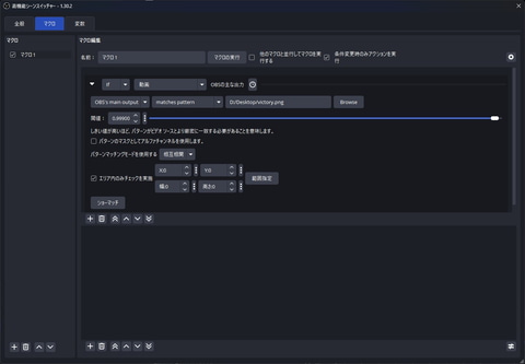 「Advanced Scene Switcher」で映像のパターンマッチングをマクロ条件に設定筆者の実際のASSの設定内容