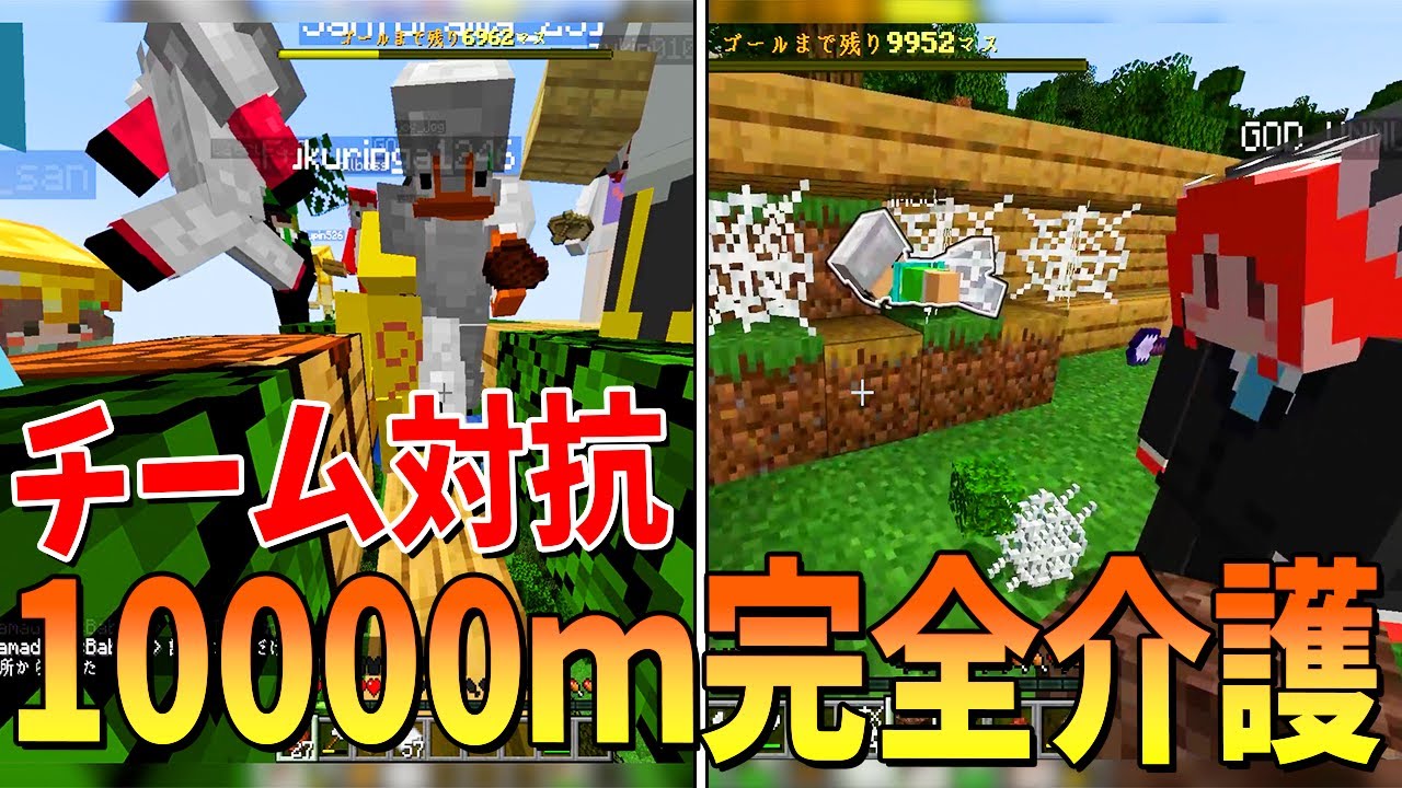 10000m完全介護でどちらが先にゴールさせられるか2チーム対抗でやってみたら神展開が待っていた – マインクラフト【KUN】