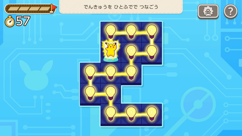 スタートのピカチュウから一筆で電球を繋いでいく問題