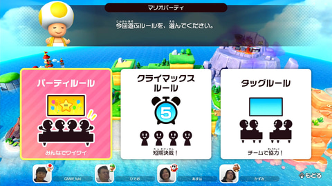 一番左が「クッパオンステージ」「カメラミニゲーム」と「マイクミニゲーム」のどちらで遊ぶかを選択