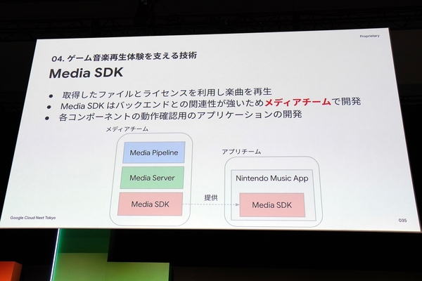 まずは、メディア配信技術の解説からだ。この領域はニンテンドーシステムズのメディアチームが担当している。このチームのミッションは「ゲーム音楽らしく、快適な再生体験を提供すること」である。