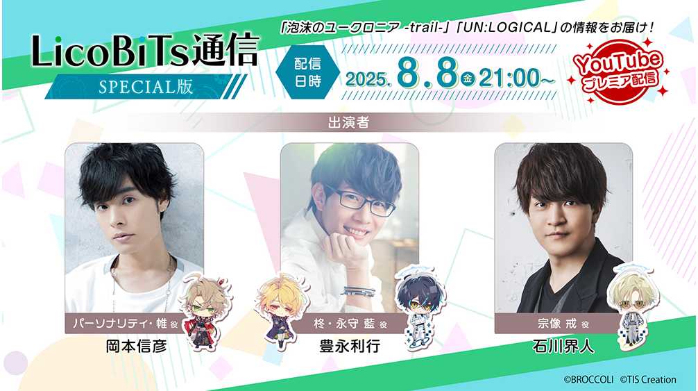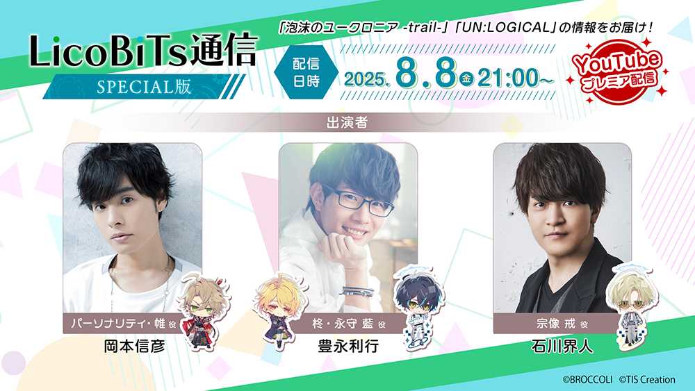 今回のLicoBiTs通信は映像付きの特別版でお届け。MCに岡本信彦さん、ゲストに豊永利行さん、石川界人さん、さらに阿座上洋平さんにも映像出演頂きました。
