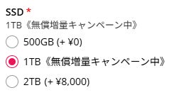 内容:標準搭載SSD 500GB → 1TBへ無償アップグレード