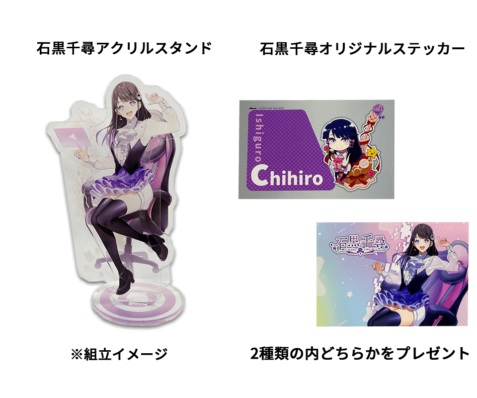 石黒千尋 LEVEL∞コラボゲーミングPCをご購入頂いた方、先着50名様にもれなくアクリルスタンドとステッカー2種類の内いずれか1つをプレゼント。