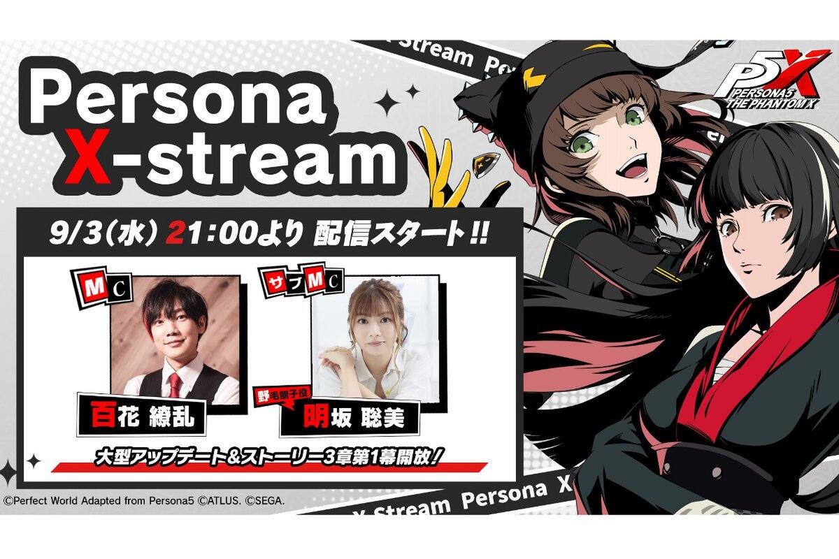 セガは9月1日、iOS/Android/PC(Google Play Games/Steam)にて配信中の心のダンジョンを冒険するRPG『ペルソナ5: The Phantom X』(以下、P5X)について、2025年9月4日に配信予定の大型アップデートに関する新情報を紹介する公式放送「Persona X-Stream ver. 2.0」を、アトラスの公式YouTubeチャンネル「ATLUS Tube」でプレミア公開すると発表。配信日時は、2025年9月3日21時より。