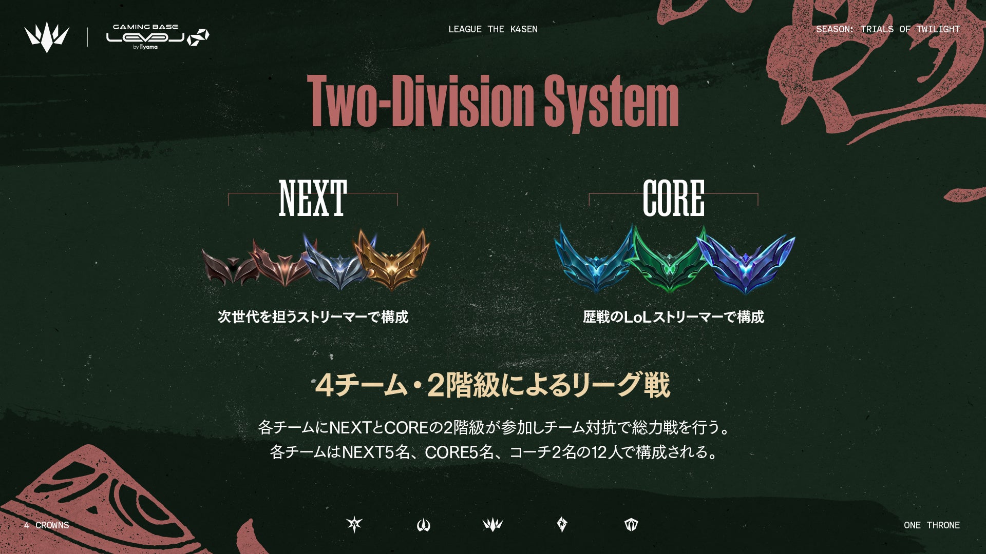 GANYMEDE株式会社(本社:東京都港区、代表取締役:西原 大輔)が運営するプロeスポーツチーム「ZETA DIVISION」に所属するストリーマー・k4sen(かせん)が『League The k4sen: League of Legends Streamer’s Championship Supported by Riot Games』(以下、LTK)の新たなるシーズン「LTK シーズン: 黄昏の試練」を開幕したことをお知らせいたします。