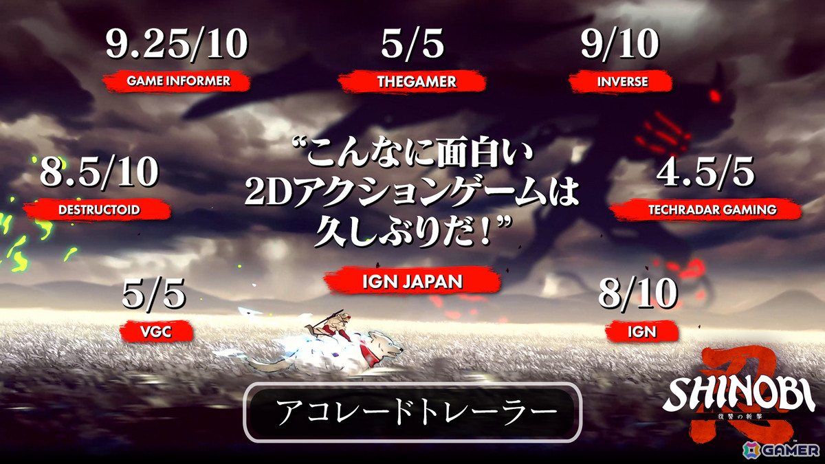 セガは、PS5/PS4/Xbox Series X|S/Xbox One/Nintendo Switch/PC(Steam)用ソフト「SHINOBI 復讐の斬撃」について、世界中のメディアから寄せられた称賛コメントを収めた「アコレードトレーラー」を公開した。