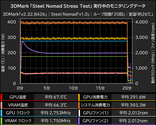 3DMark 「Steel Nomad Stress Test」 実行中のモニタリングデータ
