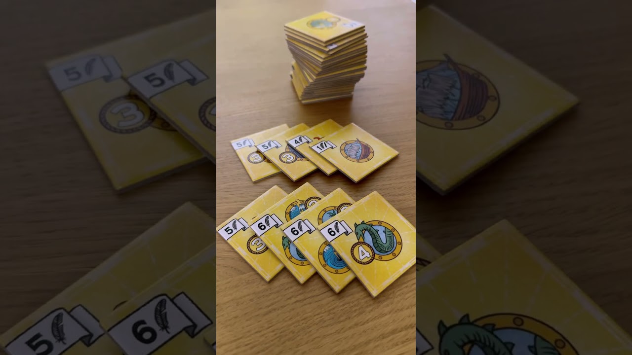 仕事的上司がこれは責任トレテッと投いた ボードゲーム。こちらの船やタコなどが 描かれたタイルを並べて誰よりも高得点を 狙うボードゲーム。手番ではタイルを1枚 選んでこの自分の4×4のマスのいずれか において手番終了。で、次の人も選んで おいてを全プレイヤーが16枚奥まで 繰り返すとゲーム終了で得点計算。得典は この黄色のタイルの縦列と横列で見ます。 例えばこの列この列にタコの絵がぴったり 3つあれば5点ゲット。この列ならこの列 にある船の絵にあたり1点ゲットみたいな 感じで列ごとに得典をゲットできる条件が 決まっているじゃないんです。あなた自身 が決めるんです。どういうことか。実は ゲームの開始時に各プレイヤーにこの黄色 のタイルが8枚配られます。で、各自この 8枚を自由に並び替えてゲームを始めます 。ちなみに各タイルの裏面は条件は難しく なりますが、より高得点を狙うこともでき ます。そう、つまりで目標を設定して、己 で取らないといけないんです。当たり前 ですが、ゲームが始まると黄色タイルの 並び替えは禁止です。なので、うわ、待っ て。この列にタコの絵を置かずにこの列で タコと岩の絵ぴったり3つずつ無理 すぎるって。いや、先輩自分で立てた目標 なんで頑張ってくださいよ。いや、これは 責任取れへんて。ああ、裏面の優しめの 目標にしとけばよかったと。 己がた目標に翻弄される面白さ。そして 16 枚をベストな配置にできた時の気持ちよさ。さ、自分が立てた目標責任取ってもらいましょうか。