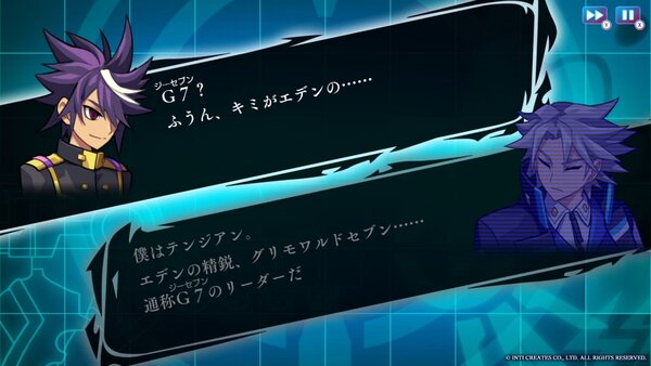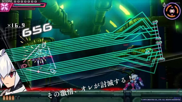 本展示にて体験できるバージョンは、ライブラリモードを含む『ガンヴォルト トライアングルエディション』の全コンテンツを、最大10分間を楽しめる特別体験バージョン(Nintendo Switch版)。