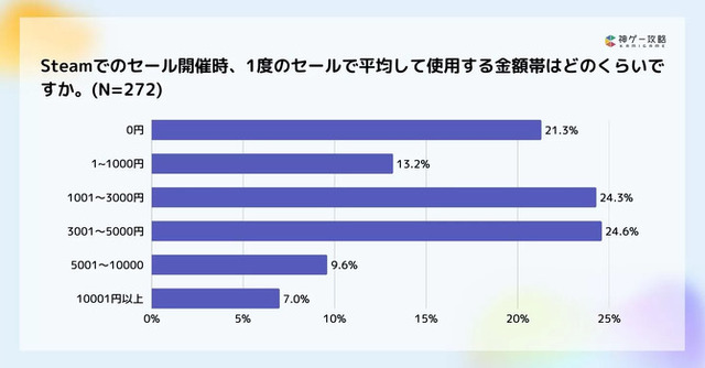 ここから「Steamを利用したことがある」と回答した人のうち、272名に本調査を行ったとのことです。
