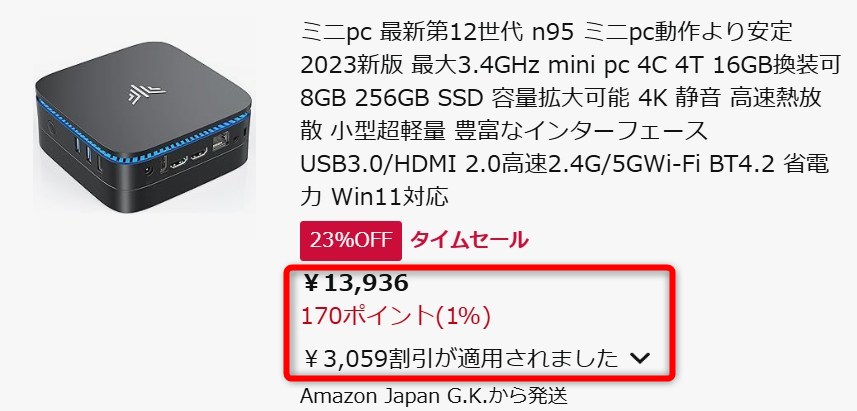 前回のセールでも爆売れしてましたが、それにしてもWindows 11 Pro搭載で13,936円は安すぎ。もちろん新品です。この価格なら家族共有PCとしてはもちろん、リビングのテレビに繋いだり、個室に置いたりと色んな用途で使えそうです。