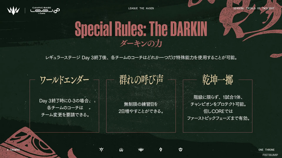 また、Day 3終了後から「LTKシーズン:黄昏の試練」特別ルール「ダーキンの力」が使用可能です。
