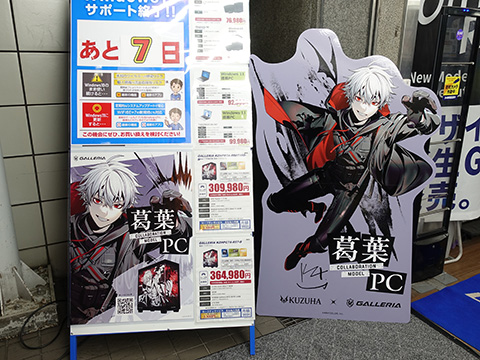 発売を記念して、全国のドスパラ実店舗(一部、実施しない店舗もあり)では葛葉さんの複製サイン入りスタンディパネルを期間限定で設置中。