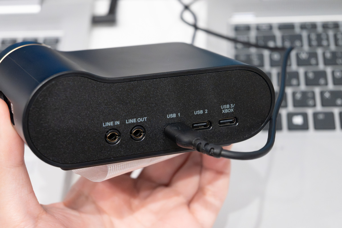 2.4GHz接続のレシーバー「GameHub」は4つの入力に対応し、入力全てを同時接続・同時再生できる「OmniPlay」機能も搭載する。搭載インターフェースは、USB-C×3(うち1つはXbox対応)、3.5mmオーディオ入力×1、3.5mmオーディオ出力×1。GameHubでは、ボリュームの調整、ミックス割合の変更、イコライザー機能の利用などが行える。