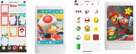 新しいデザインの「スーパーマリオ」のフレームとステッカーが登場。多彩なキャラクターのフレーム(147点)やステッカー(167点)を、撮影したゲーム画像やお気に入りの画像と組み合わせることで特別なチェキプリント(TM)を作り上げます。