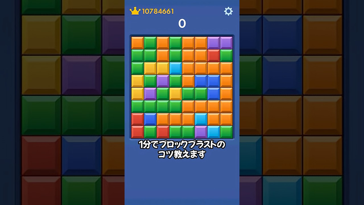1分でブロックブラストのコツを教えます 。いやや皆さんニやドエス。はい、今回な んですけれどもブロックブラストのコツと いうことでまずは盤面整理についてです。 で、盤面整理を行う上で知っておきたい 知識があるんですけれども、それは3マス 以下のブロックは出現率が低く、4マス 以上のブロックは出現率が一定ということ です。基本的には盤面に収まるブロックを 渡してくるのですが、盤面状況によっては 正解のない無理ツモを渡されてしまう場合 があります。なので、先ほどの知識を 生かした盤面整理が鍵となってきます。 具体的には空白部分を孤立させないように ブロックを詰めていき、3マス以下の空白 はなるべく作らないようにしましょう。 空白部分が複数できてしまいそうな場合は 可能であれば4マス、または4マス以上に つなげることをお勧めします。とはいえ ツモはランダムなのである程度の確率の 操作はこれで行いますが絶対に正解という ものではないのでご注意ください。ただ この盤面整理ができるかできないかで天と 地の差になるので知っておいて損はないか と思います。この動画が誰かの力になる ことを祈っておりますのでスコアが伸びた よとか何かあればぜ非ぜひコメントで教え てください。次回はさらにスコアを伸ばす ためのコンボについて解説しますので チャンネル登録がまたの方は今のうちに チャンネル登録を済ませて通知を待ててき な。それではジャーニー