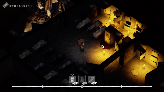 肝試しをするために向かっている最中、友達が消えていたことに気づいたフユカ。 そのフユカの前に古い廃病院が現れ……。 惨劇の痕が刻まれた廃病院を探索し、唯一の手掛かりである同級生たちの学生証を集め、真相に迫ってください。 必要なのは「逃げる勇気」だけ。