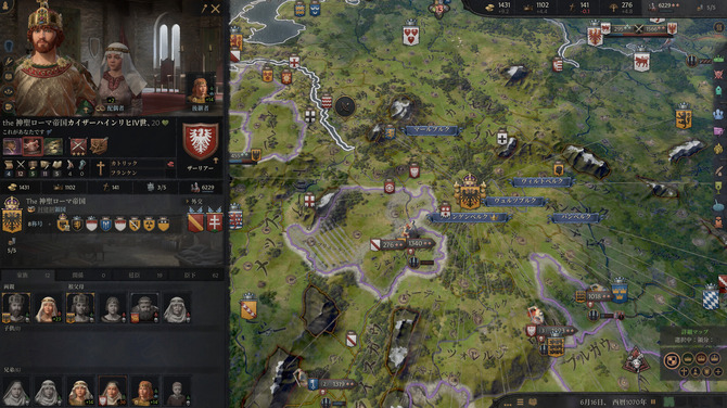 『Crusader Kings III』は、主に中世ヨーロッパを舞台にしたストラテジーです。プレイヤーは一族の指導者となり、さまざまな人材を確保しつつ、領地の拡大を目指します。