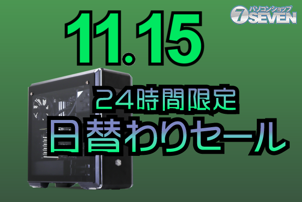 セブンアールジャパンは、『2025/11/15 24時間限定セール』を実施する。最新のゲーミングPCやデスクトップPCが最大96,000円オフとなるこのセールは、11月15日0:00から23:59までのわずか24時間限定で開催される。