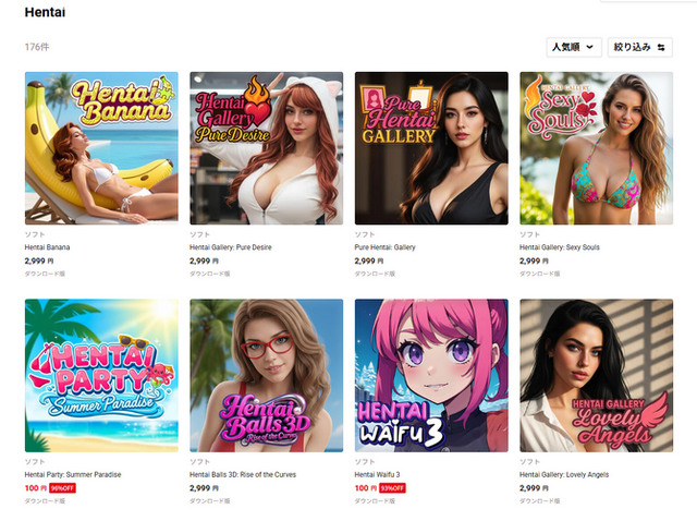 ただし、日本のマイニンテンドーストアにおいても、何がとは言いませんが、特定のキーワードで検索すると、同様の「美女の画像を用いた安価なパズルゲーム」が大量にヒットします。