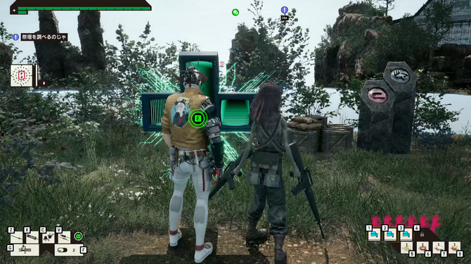 これらがグラスホッパーらしいクサい台詞回し、良く言えば分かりやすくキャッチーなストーリーテリングで味付けされ、テンポよく展開する点は遊んでいて好印象だったと言えます。序盤のみムービーが多めに感じた時はあったものの、操作中にも無線形式でストーリーにかかわる掛け合いが為されるなどの工夫もあり、大半のチャプターで操作時間の方が長く思えました。オムニバス形式でもあるため、話の展開についていくこと自体への苦労は少ないでしょう。