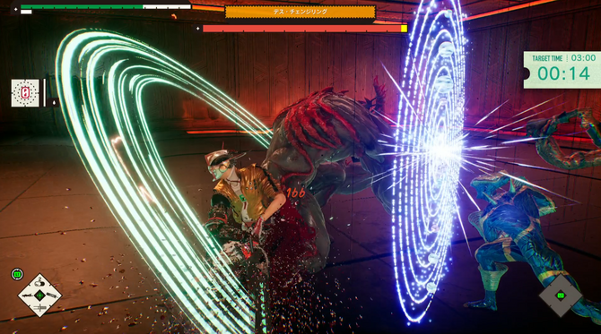 また、ボス戦ともなるとハードではなかなかの歯ごたえで、敵の攻撃を見切った上で適切な攻撃を差し込む駆け引きが必要になる一方、イージーでなら無理やりにでも攻撃を叩き込んで、回復効果もある必殺技「ブラッディサマー」につなげて強気に押し込みそのまま勝ちに行けます。