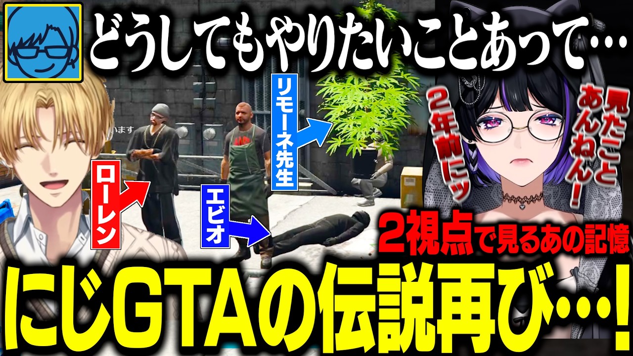 【2視点まとめ】リモ先の熱い要望でマトリに変装したエビオ達、にじGTAの伝説再び…!【にじさんじ/切り抜き/エクス・アルビオ/狂蘭メロコ/折咲もしゅ/ローレン/リモーネ先生/NEWTOWN GTA】