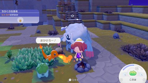 「生息地」や建築した「いえ」などをポケモンの「すみか」とすることができ、各ポケモンの拠点とすることができるのだ。「すみか」の周りにそのポケモンが好むアイテムを置いてあげれば「すみごこち」が向上し、ポケモンたちとさらに仲良くなっていく。