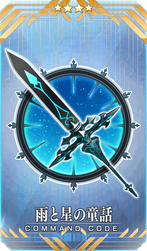 自身のQuickカード性能を10%アップ&Artsカード性能を10%アップ&宝具威力を8%アップ&NPを50%チャージした状態でバトルを開始する + 元気なコン、陽気なコン、健気なコンのドロップ獲得数を2個増やす + 『復刻:水怪クライシス 無垢なる者たちの浮島 ライト版』において、自身の攻撃の威力を200%アップ【『復刻:水怪クライシス 無垢なる者たちの浮島 ライト版』イベント期間限定】