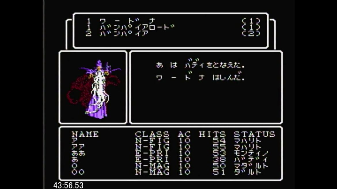 2ターン目にワードナをバディで倒して、残るバンパイアロードもジルワンと無駄行動をしたのが大きな勝因となった。1ターン目のパーティーの奇襲でバンパイアロードのHPを削れたのと、2ターン目にバンパイアが使ったカティノでバディ役が寝なかったのも大きい
